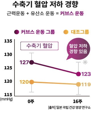 커브스 운동으로 유의미한 수축기 혈압 수치 저하(-4.1mmHg)