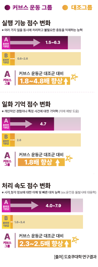 4주간의 커브스 운동만으로도 뇌의 나이가 젊어집니다.