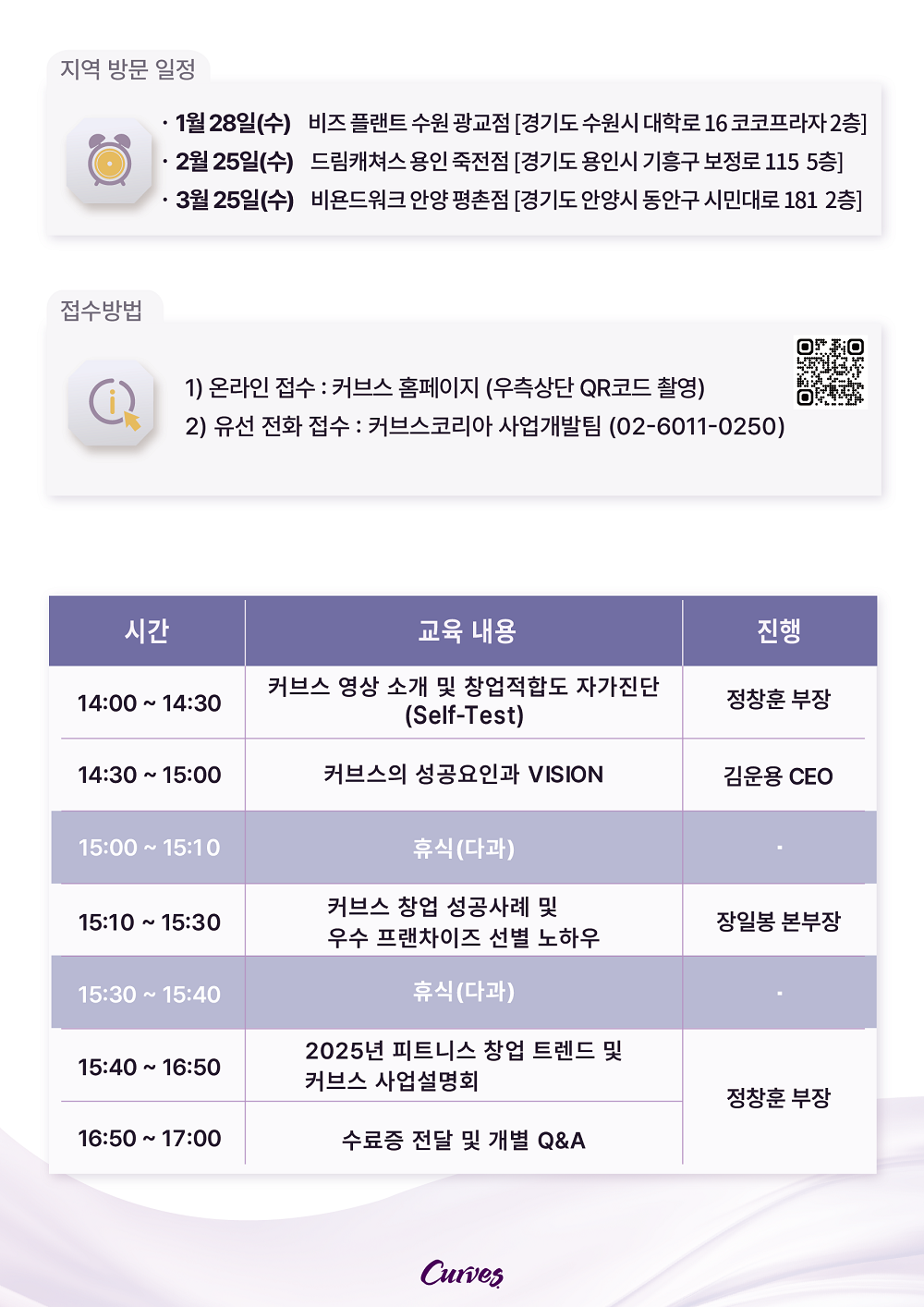 커브스 창업상담 또는 설명회 신청은